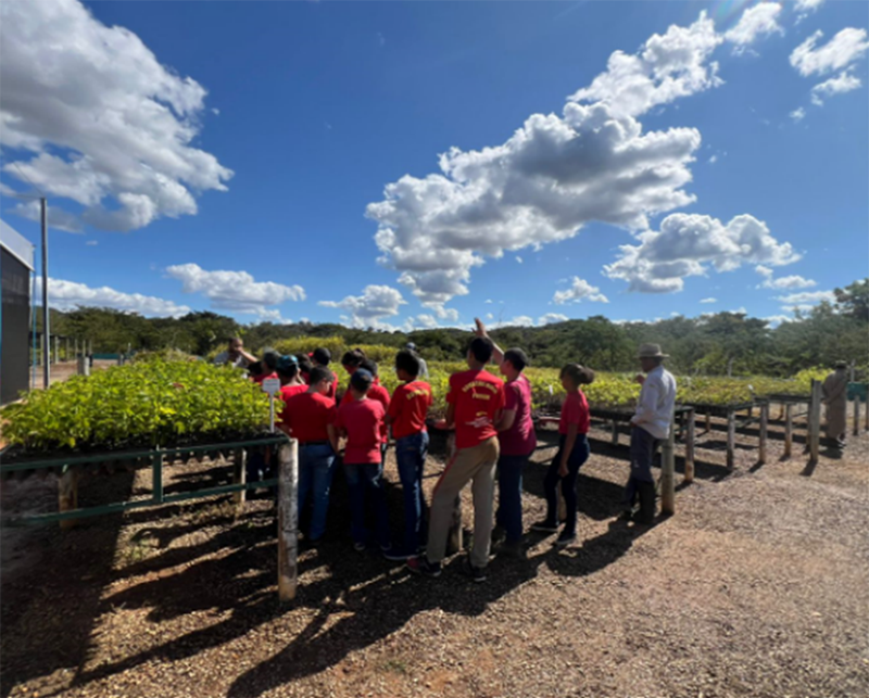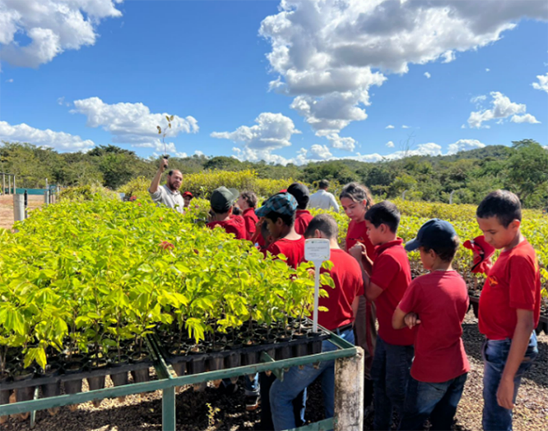 A atividade culminou em uma trilha interpretativa, onde os alunos observaram espécies típicas do bioma e finalizaram com o plantio simbólico de uma muda de baru.